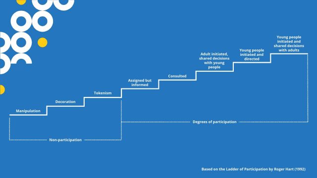 The Ladder of Participation diagram is designed to serve as a beginning typology for thinking about children’s participation in projects. The ladder metaphor is borrowed from an article on adult participation, though new categories have been developed for this Essay (see Arnstein, 1969).