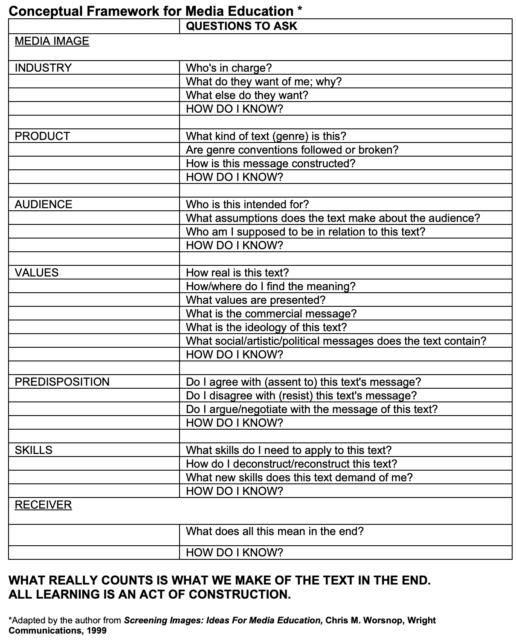 As a guide to action, Teacher Materials (C.M. Worsnop, NW Center for Excellence in Media Literacy) presents a list of questions a young person should ask when thinking critically about the piece of content at hand.